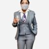 Two piece plus size stretchy set with plunging neckline bodysuit and high waisted legging