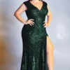 Midnight grey sequin off-the-shoulder gown with mesh insert sweetheart neckline and side cut-outs